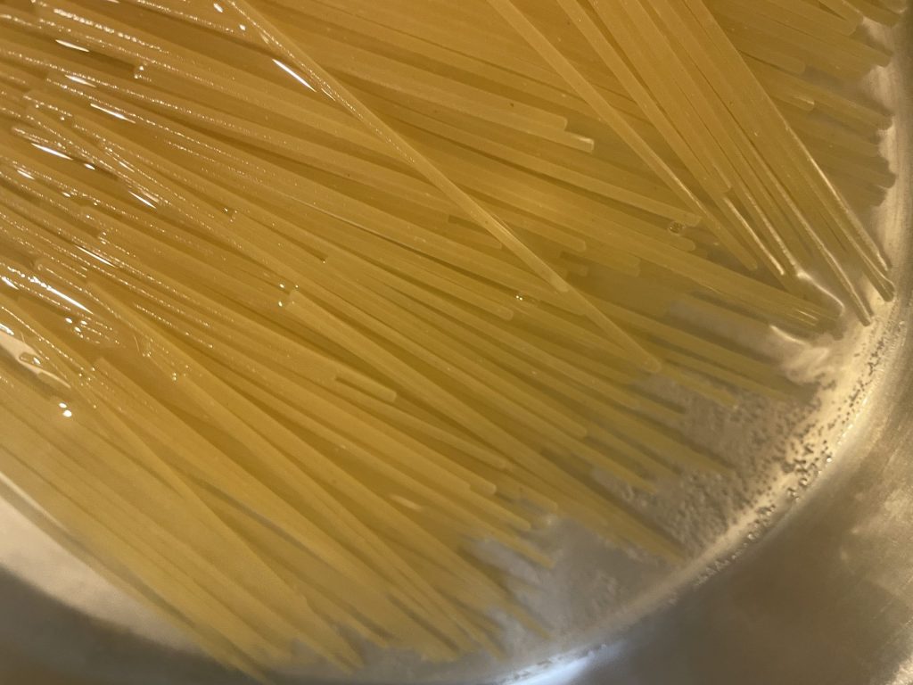①まずはお湯200ccを鍋に入れ沸かす。そこのパスタを入れるのだがおそらく家庭のフライパンのサイズでは半分に折らない限りなかなか入らない。なので周りにイタリア人がいないか確認してから半分に折ろう。イタリア人に万が一パスタを折っているところが見つかると親の仇のように切れ散らかされるため注意が必要だ。