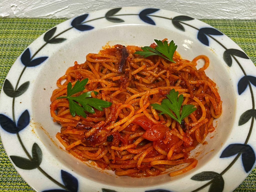 フライパンひとつで作る”濃厚トマト焼パスタの素”